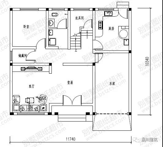 一層:堂屋、客廳、臥室、廚房(兼餐廳)、儲藏間、農具間、衛生間、車庫