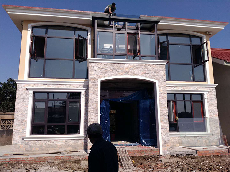 今天介紹的是一款農村二層小別墅設計效果圖建房實拍。磚混結構的形式,開間12米,進深11.6米,主體僅花了25萬左右就搞定了。是不是有點難以置信,但是事實確實就是這樣哦。這個戶主在購買了該圖紙之后,在原圖的基礎上做了改動,把原圖陽臺的部分直接改成了窗戶。雖感覺少了點通透的陽光感,但是落地窗形式的玻璃并沒有影響美感,同時還使得室內空間增加了不少,總體感覺還是挺不錯的。