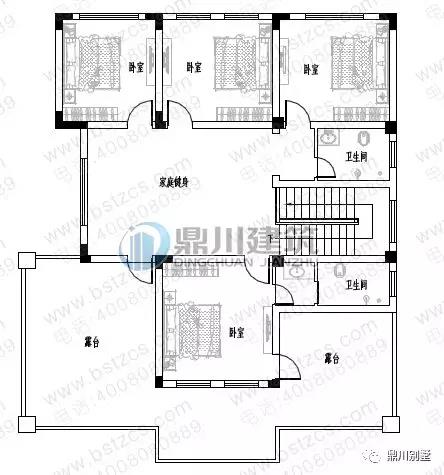 三 層: 客廳、3臥室、書房(附露臺(tái))、衛(wèi)生間、露臺(tái)
