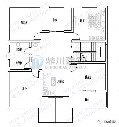 三 層: 起居室、臥室、書房、陽光房、健身房(附露臺(tái))、衛(wèi)生間、雜物間、露臺(tái)