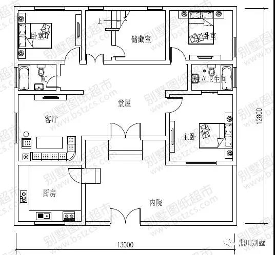 一 層: 內(nèi)院、堂屋、客廳、臥室(附衛(wèi)生間)、2臥室、廚房、儲(chǔ)藏室、衛(wèi)生間