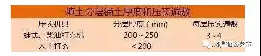 4.碾壓密實(shí):填土分層鋪土的厚度和壓實(shí)遍數(shù),應(yīng)結(jié)合壓實(shí)機(jī)具,參照表上進(jìn)行;
