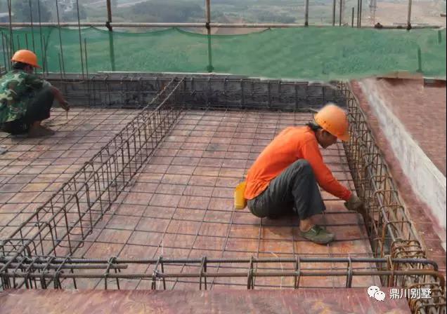 3、為確保上部鋼筋的位置,兩層鋼筋之間須加鋼筋馬蹬。負(fù)彎矩筋每個相交點均要綁扎。