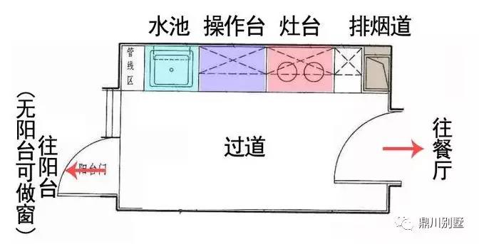 顧名思義,將灶臺、水槽、抽油煙機等廚房工作區布置在一邊。