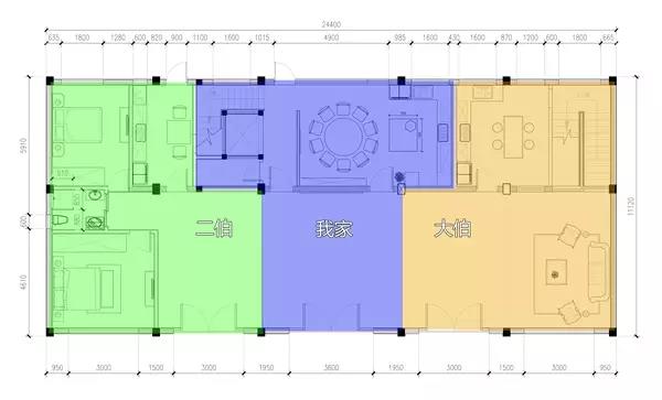 弄清楚了各家需求,然后就是設計的準備工作了。我大概一共做了有 4~5 個方案,最后這個得到了大家伙的一致認同,也符合農村風水。
