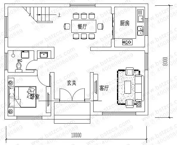 一 層: 客廳、臥室、廚房兼餐廳、衛(wèi)生間
