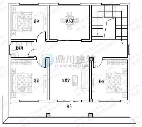 一層進(jìn)門即為門廳,設(shè)有兩間臥室,二樓有4間臥室,帶起居室和書房,雖然此款小別墅占地面積小,但是功能挺齊全,基本適合家庭居住需要。6個(gè)臥室的設(shè)計(jì)即使來了客人也有足夠的空間。