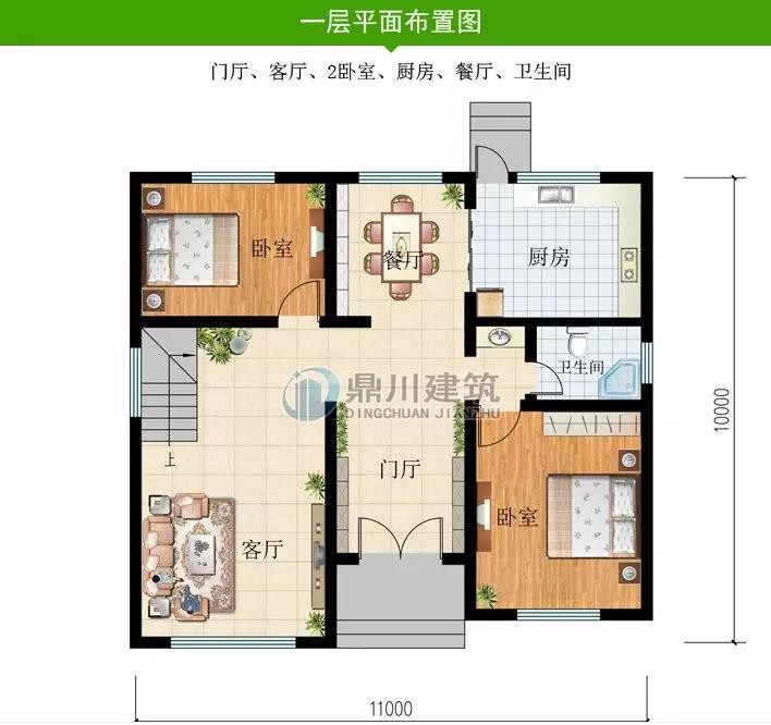 時(shí)尚大氣的外觀,簡單實(shí)用的布局,一層有客廳和臥室、餐廳、廚房、衛(wèi)生間,二層帶兩間臥室,此款小別墅只有三間臥室,適合農(nóng)村一般的一家三口或者四口居住。