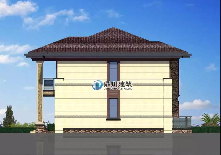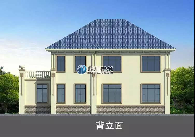 從背面效果圖看,背面的老虎窗經典貴氣,并設有對外門,很適合農村生活習慣。