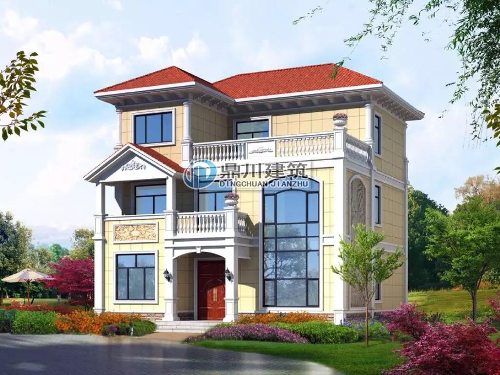 首先層數方面就很符合農村習慣,一二層嫌小,四五層又太高,三層正正好,這款別墅從外觀上就已經贏子很多自建房,高端大氣上檔次用在這別墅上,不吃虧,外立面主打溫暖明快的黃色,溫馨舒適,黃墻紅瓦的搭配在農村已經很常見了,這樣的配色不刺激,卻高雅。