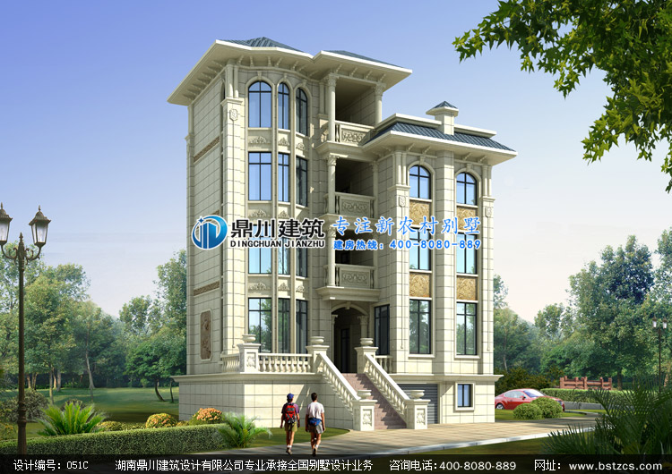 051C四層帶架空層的歐式別墅設計圖紙外觀效果圖,農村五層自建別墅設計圖效果圖