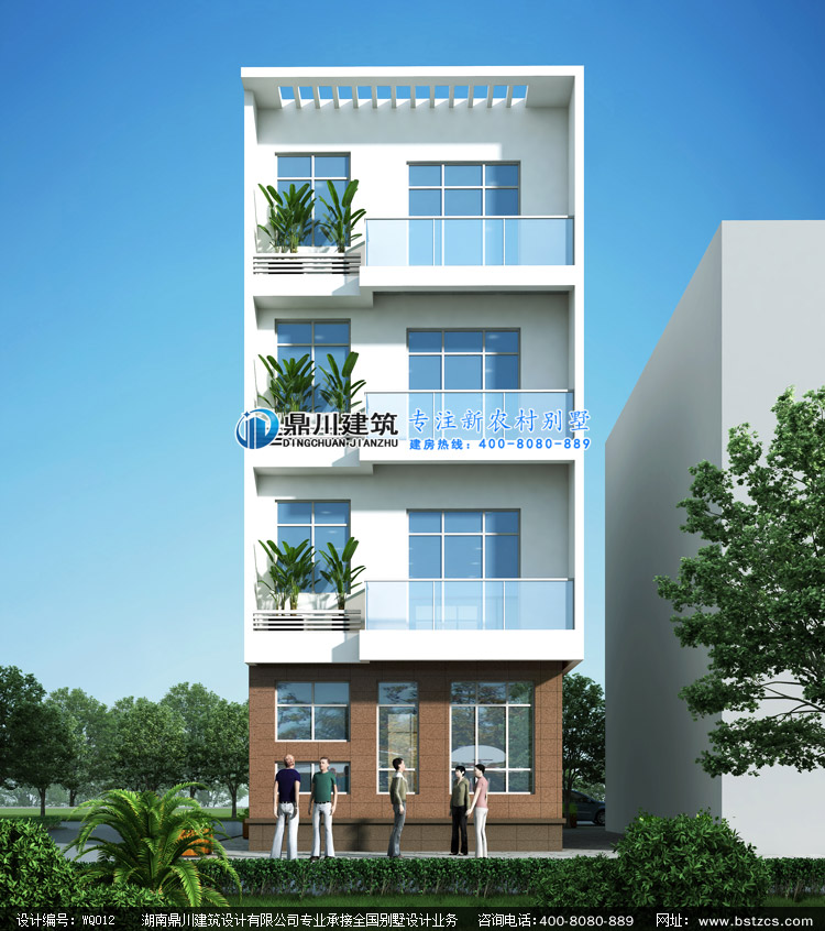 WQ012現代四層平屋頂小別墅設計圖紙外觀效果圖,鼎川建筑現代風格別墅設計