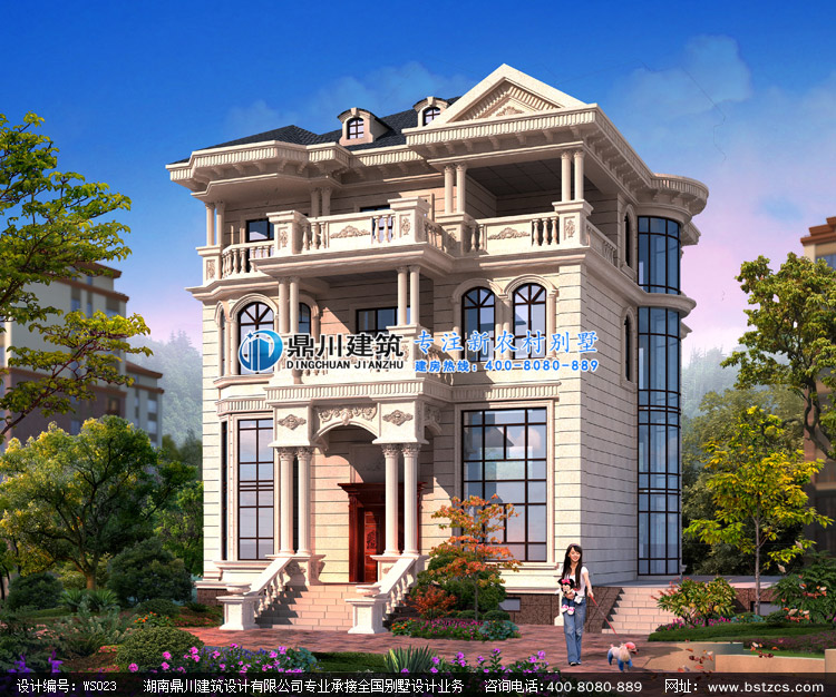 WS023大氣的四層復式歐式別墅設計圖紙外觀效果圖,鼎川建筑四層歐式別墅設計