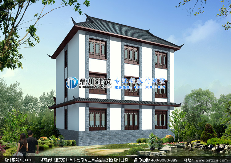當前位置: 首頁 > 設計案例 > JL150三層帶露臺中式別墅私人定制設計圖外觀效果圖,三層中式別墅設計圖紙