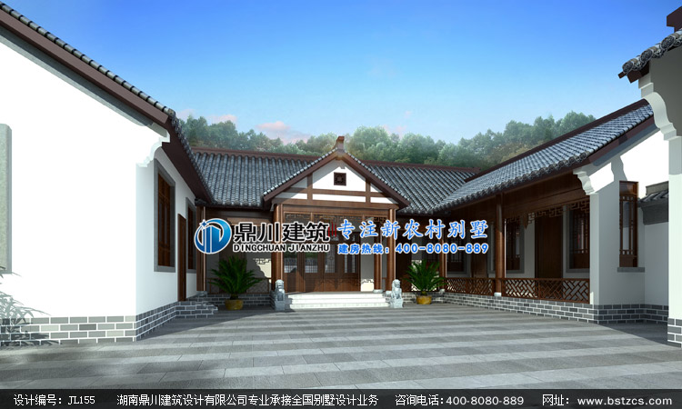 JL155農(nóng)村一層中式三合院設(shè)計(jì)圖紙外觀效果圖,鼎川建筑一層中式自建房設(shè)計(jì)圖紙