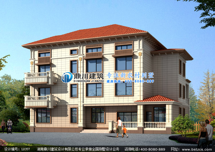 L0357三層帶閣樓自建別墅設計圖外觀效果圖,鼎川建筑三層帶車庫別墅圖紙設計