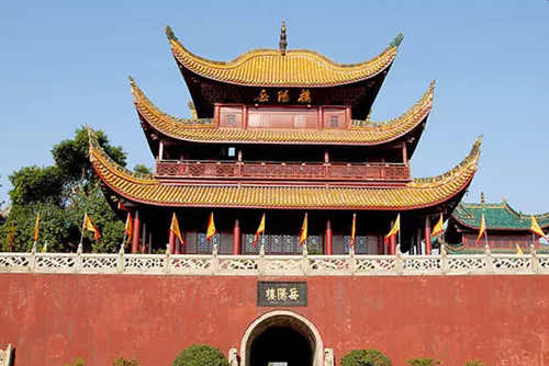 湖南岳陽市著名古建筑,它屹立在洞庭湖畔,是我國古建筑中的瑰寶,自古有“洞庭天下水,岳陽天下樓”之譽。前身是三國時(215年),吳國魯肅練水兵士構筑的閱兵臺。唐開元四年(716年)中書令謫守岳州,在此修樓,正式定名為“岳陽樓”。宋慶歷五年(1045年),滕子京守巴陵郡時重修,并請范仲淹撰《岳陽樓記》,于是名聲更大,成為我國南方一大名勝。現存建筑為清同治六年(1867年)再建,保持宋代建筑的藝術風格。