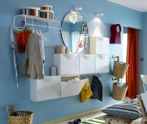 現(xiàn)在很多家裝總是在門后邊、門廳或洗手間安上衣架、衣鉤、吊柜,還為此美其名:東西掛起來不占地方。這些陳規(guī)陋習(xí)不僅是對視覺空間的極大侵占,顯得屋里亂糟糟的,更重要的是吊起來的柜子里放著總是長年不用的東西。