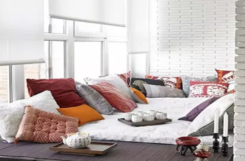 可在窗邊打造一個飄窗或地臺。也可以客廳與臥室的銜接處為界,在客廳打一個二級臺階,以客廳和陽臺為銜接,在陽臺打上一個三級地臺,“錯落有致”會大大提升視覺空間層次感、新奇感和回歸感。