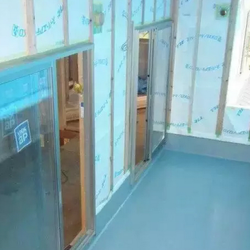 門窗及周圍也做了防潮保溫的處理,門窗上的玻璃是新型保溫的,門窗周圍用黃色丙烯酸防水膠帶對其進行密封處理。