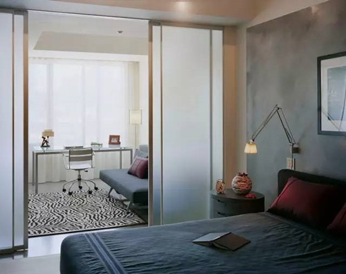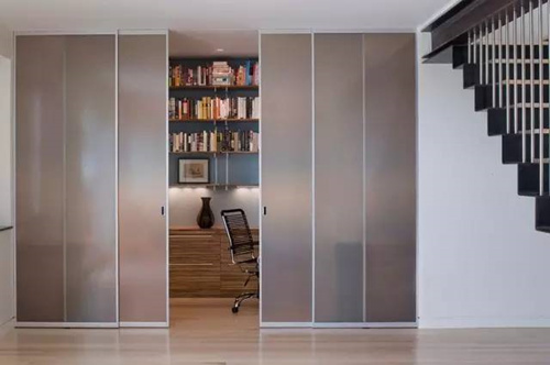 其實就是玻璃推拉門加上蒙砂處理,更加的適合臥室、衣帽間和浴室這樣需要隱私的地方,也有人選擇了折中的處理,部分加蒙砂,會更加的便宜,而且最好不要加花紋,不然就顯得很難看。