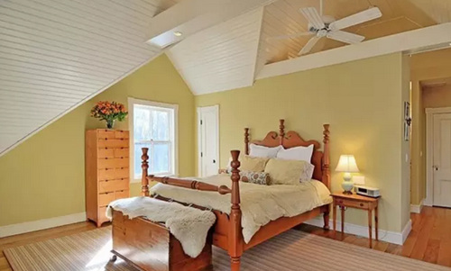 1、臥室。將閣樓改造為臥室,既簡單又實用,窗戶在床的一邊透著明媚的陽光,生活在這里感到悠閑愜意。
