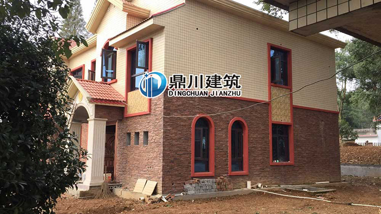 這戶人家在選擇了這款地中海風格二層雙拼別墅設計圖紙后,做了一些小改動。此款圖紙主體造價在36-42萬,這戶戶主房子建成花了80萬,戶主將本來是涂料的墻體改成了瓷磚。獨具特色的造型讓房子在農村成為一道特色的風景,朱紅色的文化石和紅色的屋頂、窗套恰到好處,與黃色的外墻磚很好的融合在一起。亮麗顯眼!大氣的門斗加上方柱更是錦上添花,朱紅色的文化石和大門交相輝映,很好的融合在一起,時尚又自然!