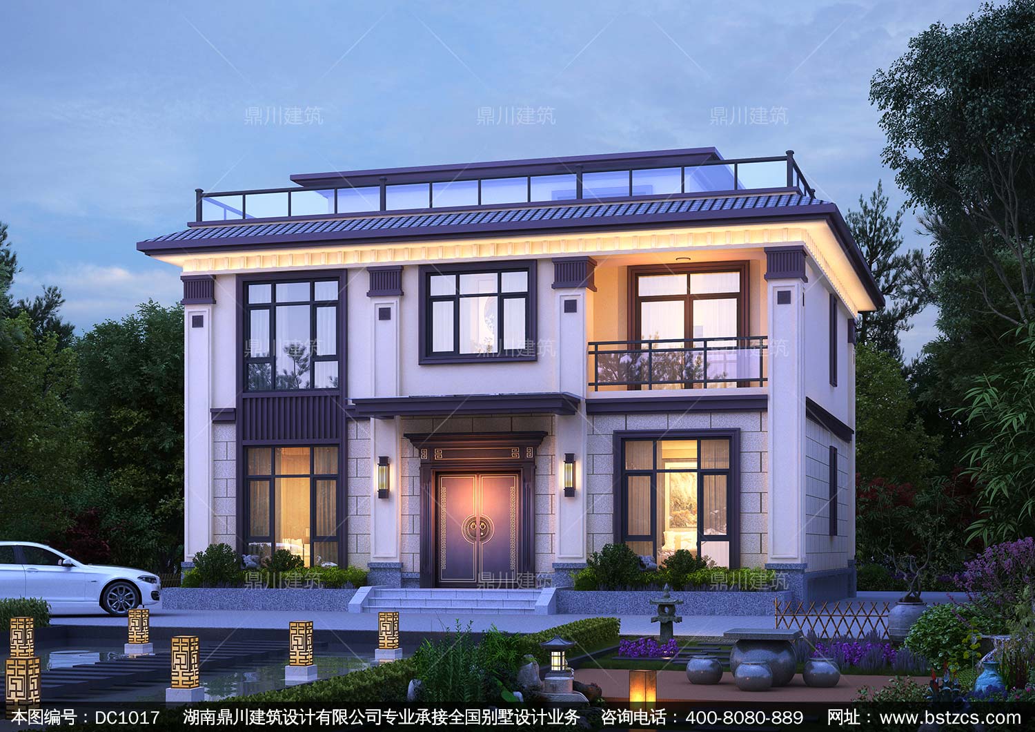 新中式二層平屋頂別墅圖紙及效果圖_農(nóng)村自建別墅設(shè)計(jì),鼎川建筑