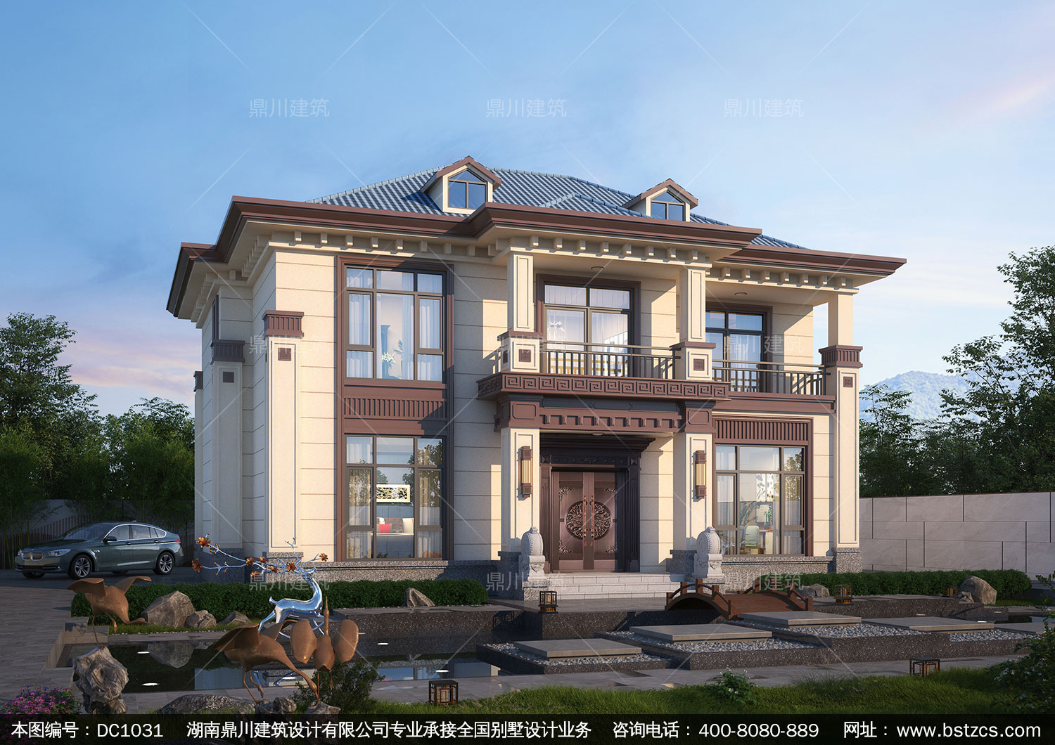 新中式二層帶陽(yáng)臺(tái)別墅施工圖紙及效果圖_農(nóng)村自建別墅設(shè)計(jì),鼎川建筑