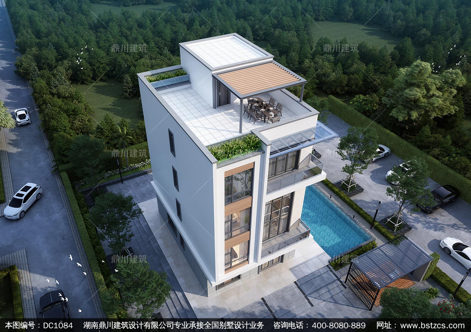 現代四層平屋頂別墅施工圖紙及效果圖_新農村自建別墅設計,鼎川