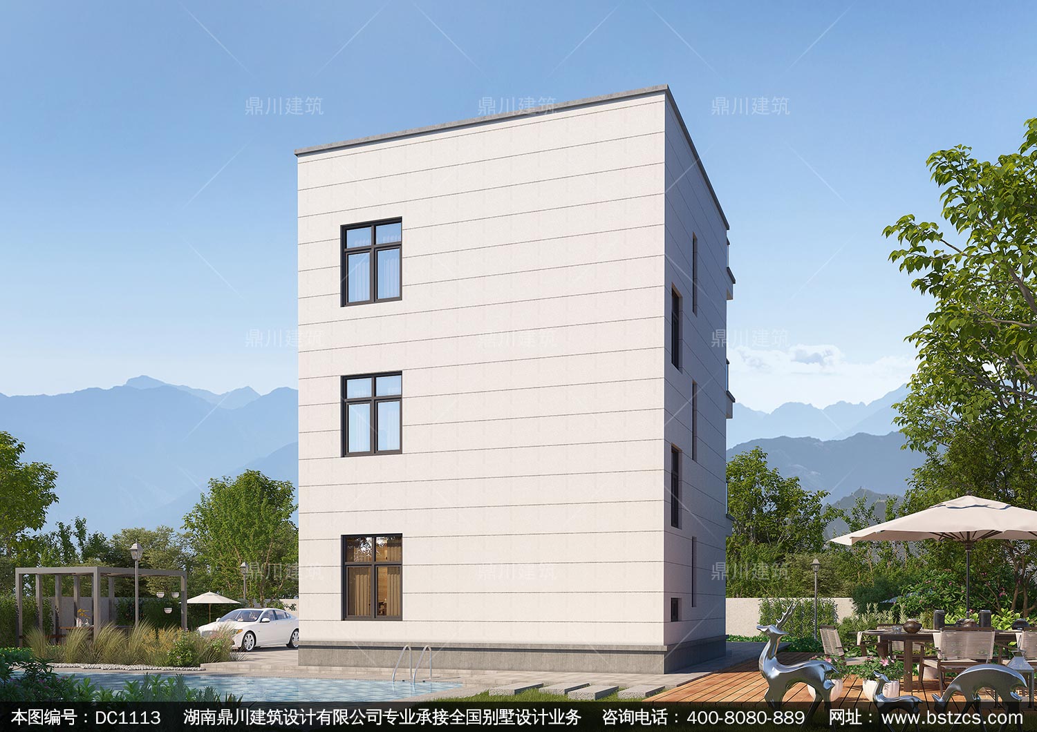 三層現代平屋頂別墅圖紙及效果圖_新農村自建別墅設計,鼎川建筑