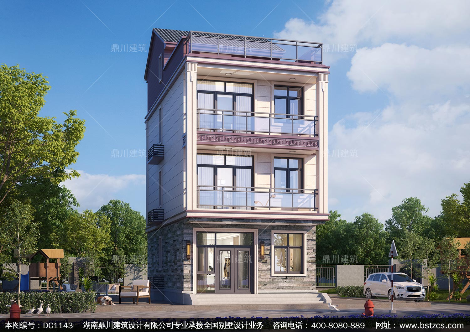 現代四層帶商鋪別墅圖紙及效果圖_新農村自建別墅設計,鼎川建筑