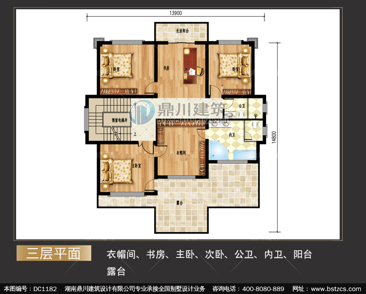 三 層: | 衣帽間、書房、主臥、次臥、公衛(wèi)、內(nèi)衛(wèi)、陽臺(tái)、露臺(tái) | |||