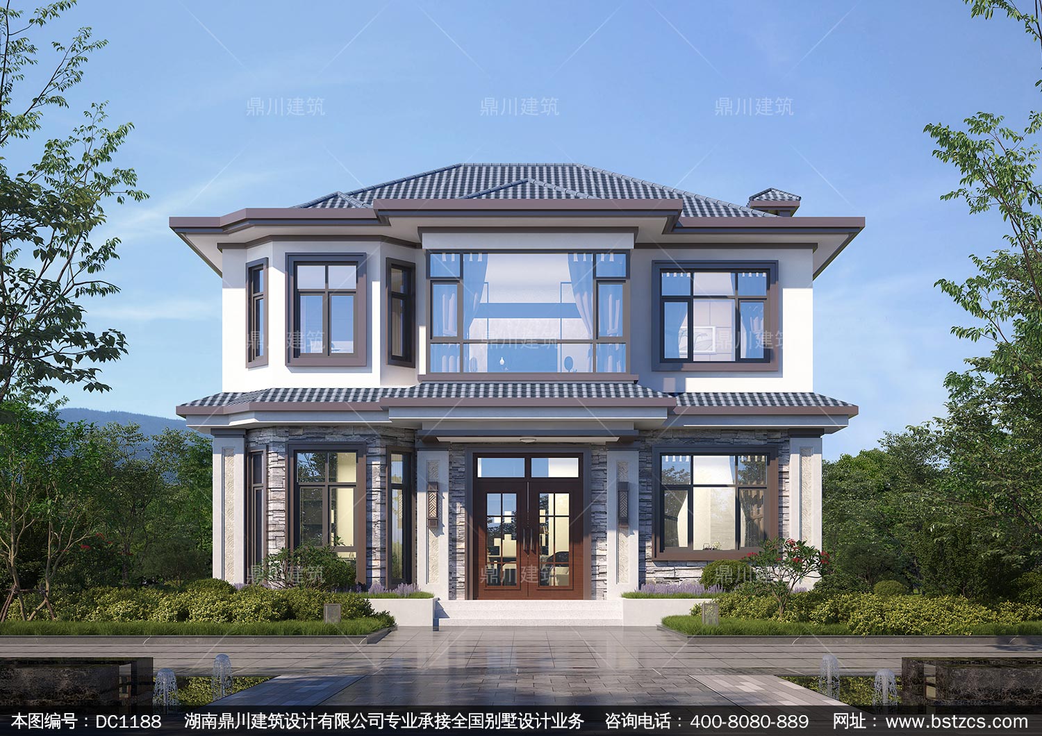 新中式二層實用別墅圖紙及外觀效果圖_農村自建別墅設計,鼎川建筑