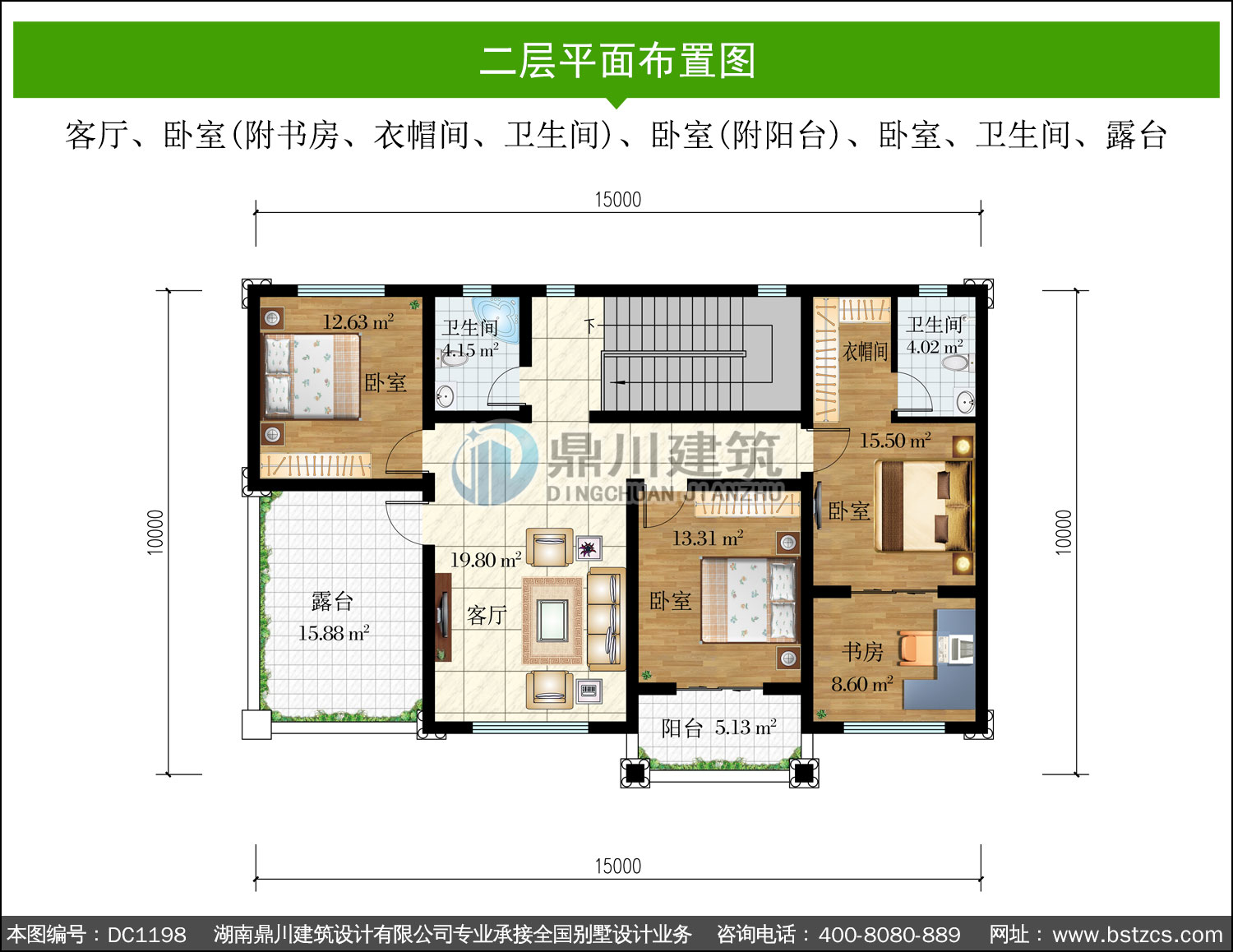 二層帶露臺實用別墅施工圖紙及效果圖_新農村自建房設計,鼎川建