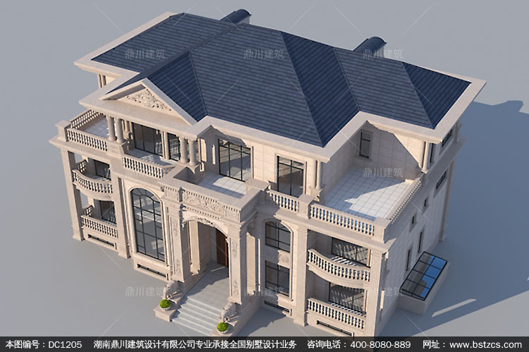 歐式三層帶露臺豪華別墅設計圖紙及外觀效果圖_農村三層自建房子