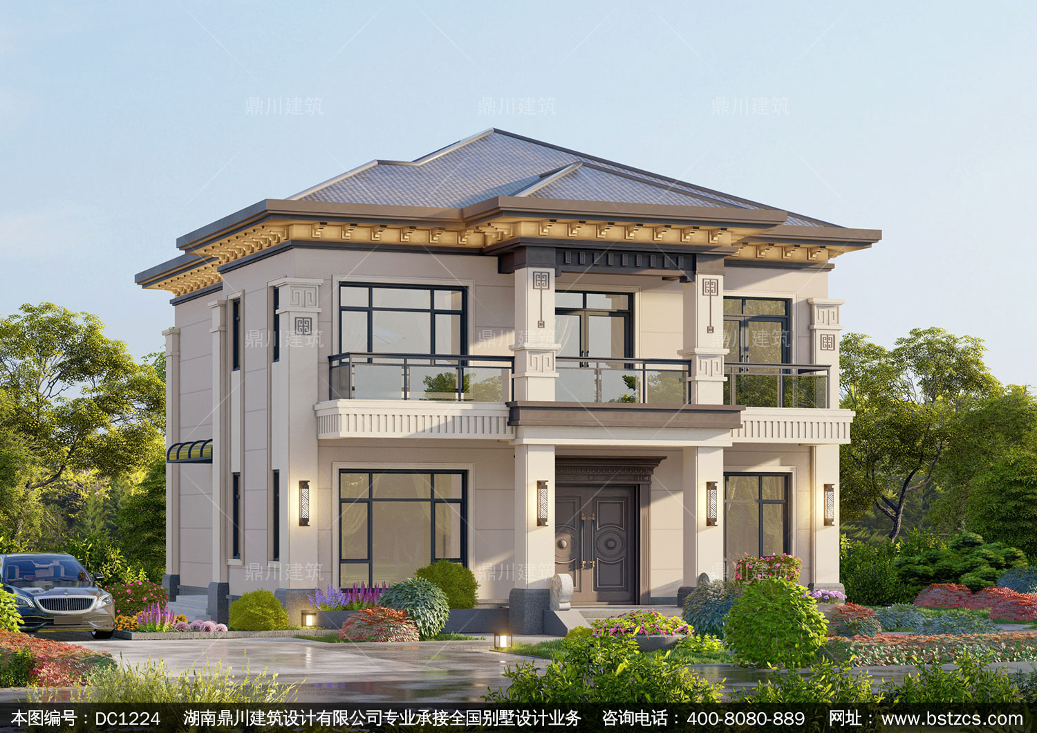 新中式二層別墅圖紙及外觀效果圖_農村自建別墅設計,鼎川建筑