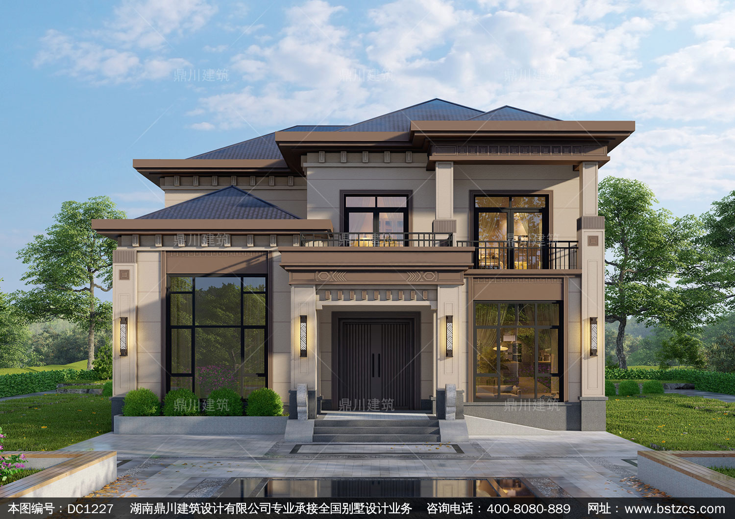 新中式二層別墅圖紙及效果圖_農(nóng)村自建別墅設(shè)計,鼎川建筑