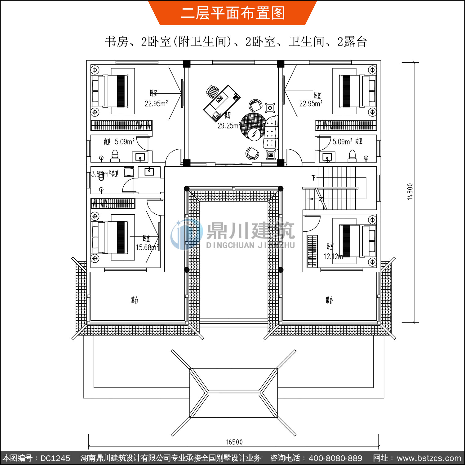 二 層: | 書房、2臥室(附衛(wèi)生間)、2臥室、衛(wèi)生間、2露臺 |