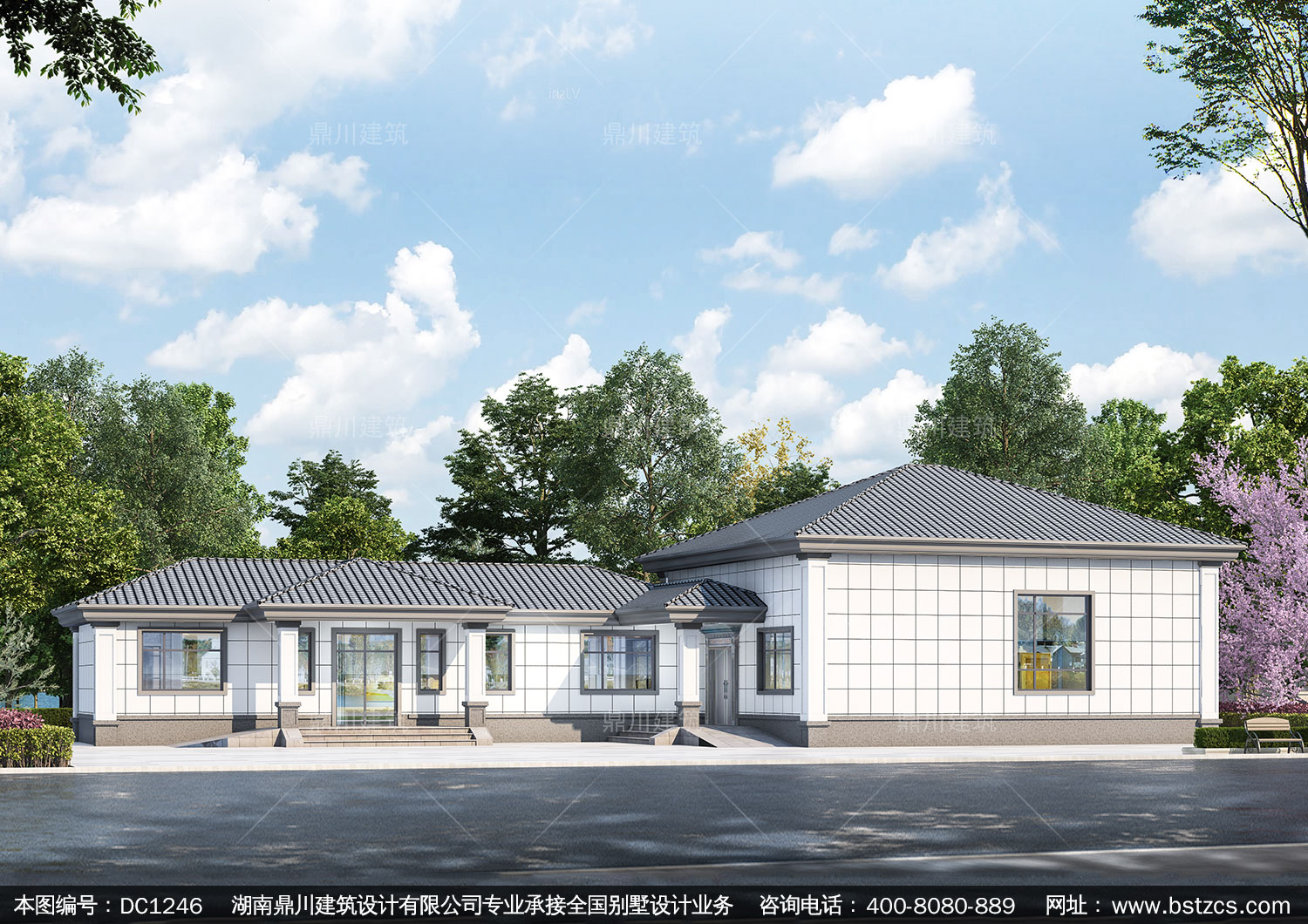 新中式一層別墅施工圖紙及效果圖_農村自建別墅設計,鼎川建筑