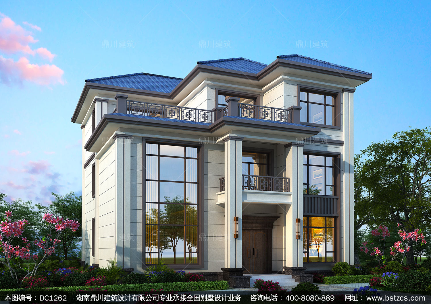 新中式三層復式別墅施工圖紙及效果圖_農村自建別墅設計,鼎川建筑