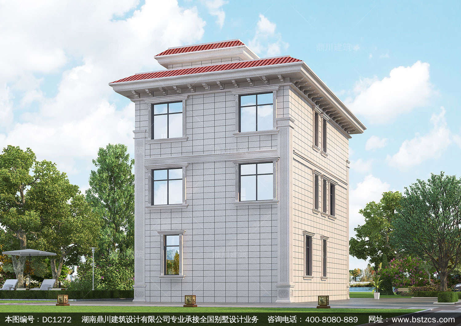 歐式三層小戶型別墅施工圖紙及效果圖_農村自建別墅設計,鼎川建筑