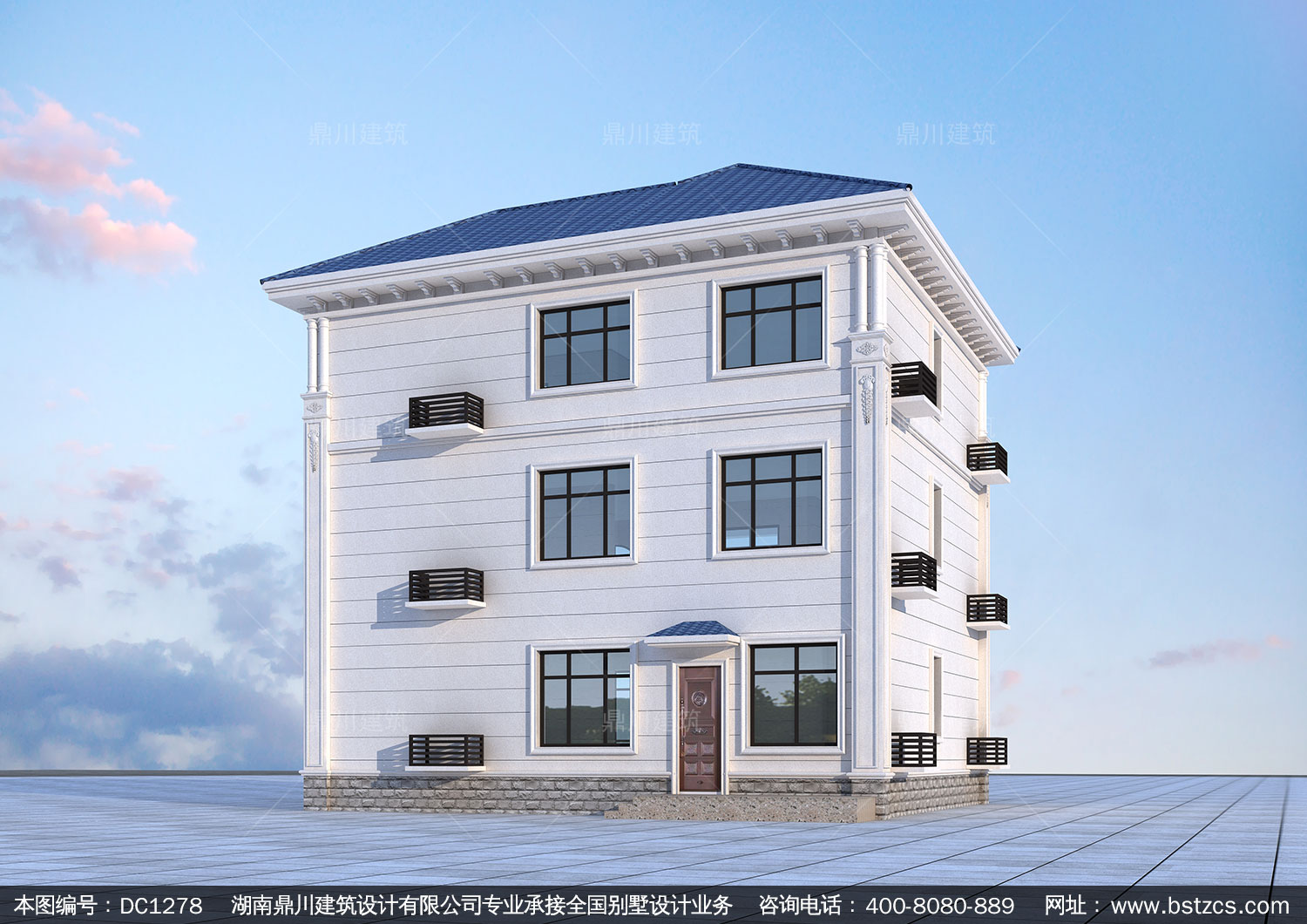 新農村歐式三層帶露臺別墅圖紙及效果圖_鄉村自建房設計,鼎川建