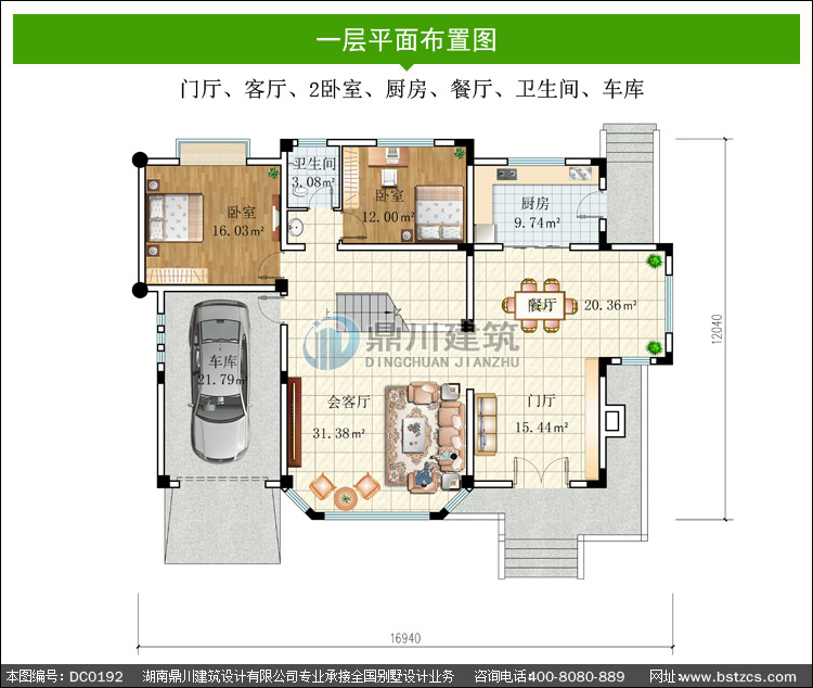 二層帶車庫別墅設計施工圖及效果圖_別墅設計圖紙,鼎川建筑