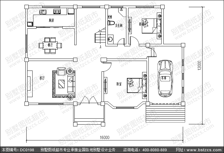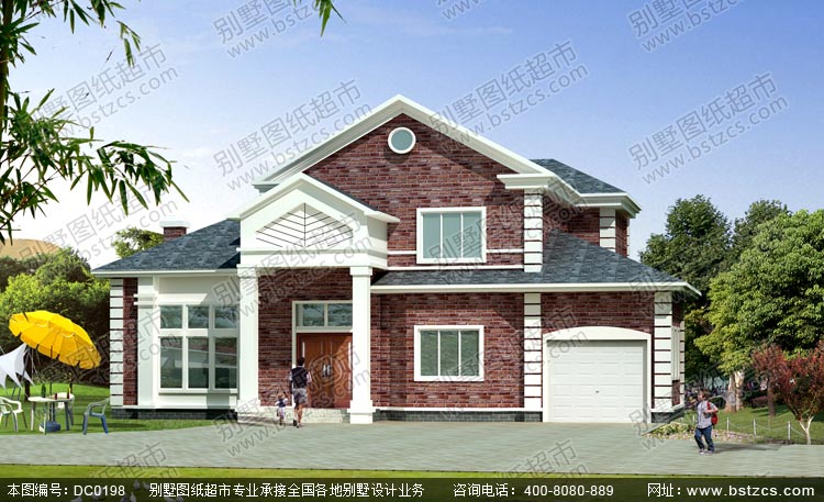 獨特二層帶車庫別墅設計圖紙及效果圖_別墅設計圖紙,農村房屋設計圖