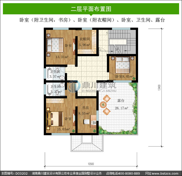 二 層: | 臥室(附衛生間,書房)、臥室(附衣帽間)、臥室、衛生間、露臺 | |||