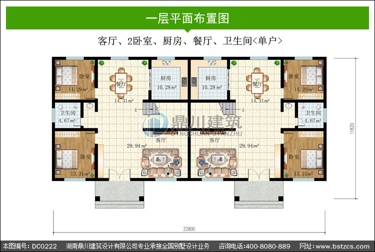編號: DC0222 | 層數: 二層 | 結構形式: 磚混結構 | 主體造價: 55-65萬 |