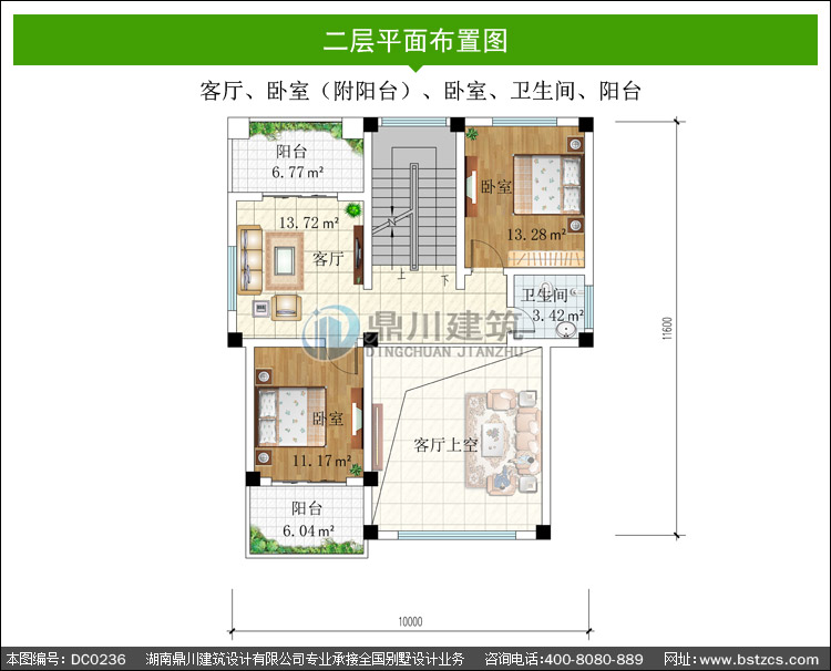 二 層: | 客廳、臥室(附陽臺)、臥室、衛(wèi)生間、陽臺 | |||