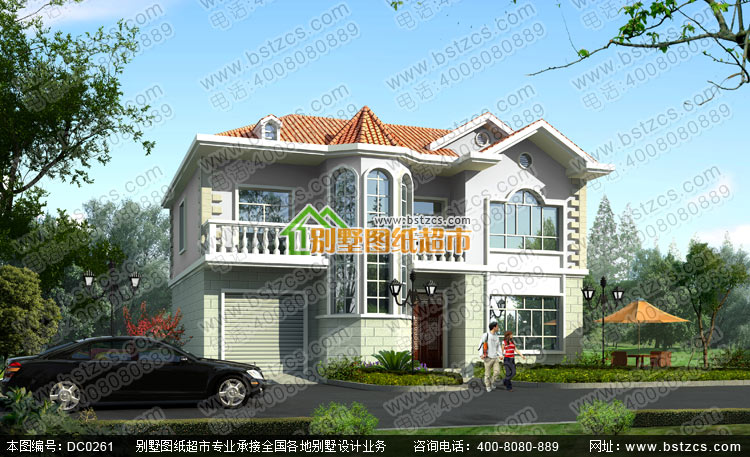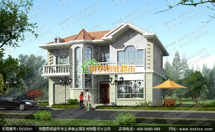 二層帶車庫別墅設計圖紙_歐式別墅設計圖紙,鼎川建筑別墅圖紙