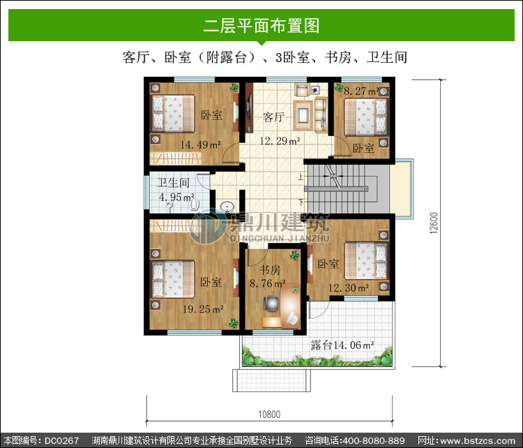 二 層: | 客廳、臥室(附露臺)、3臥室、書房、衛生間 | |||